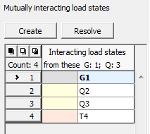 Mutual exclusion | - | An arbitrary number of load cases can be introduced into one group. In such a case, the program will not generate any combination that contains at least two load cases from this group. |