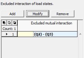 Dialog window "Generator of combinations" - Excluded interaction of load states