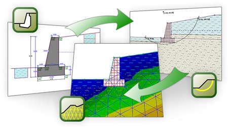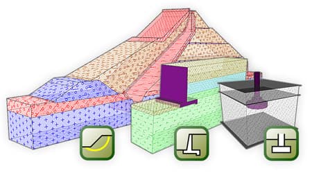 O GEO5 foi projetado para lidar com a maioria dos problemas geotécnicos, desde os básicos, com os quais a maioria dos geotécnicos trabalha (verificação de fundações, muros, estabilidade de taludes), até os mais sofisticados (projeto de túneis, verificação de danos devido à escavação de túneis, estabilidade de taludes rochosos). Cada programa do GEO5 aborda um tipo específico de construção. Dessa forma, o cliente pode escolher apenas os programas que necessita.