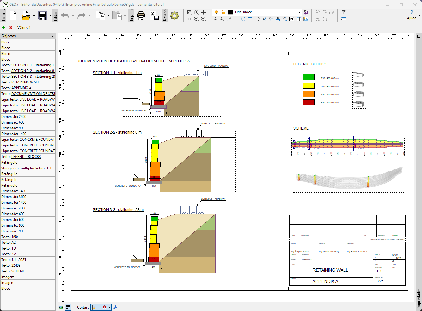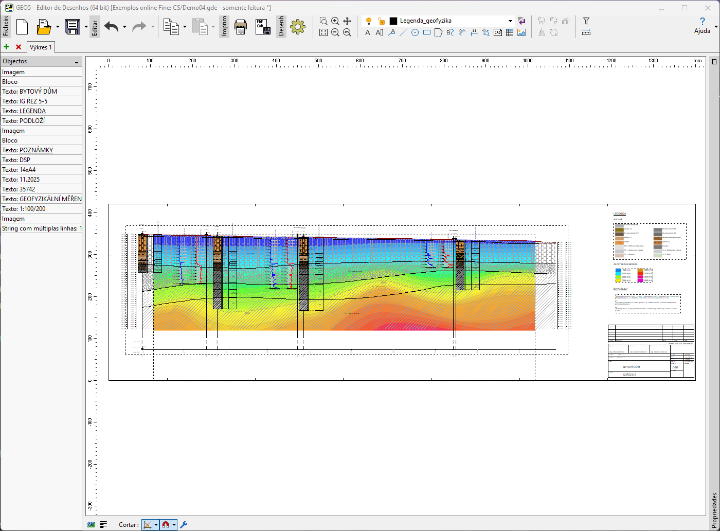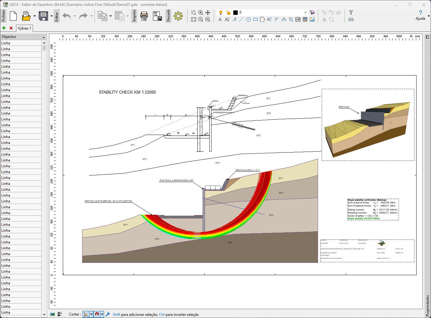 Programa desenvolvido para criar e editar desenhos a partir de qualquer programa GEO5. Tudo num só lugar – sem necessidade de alternar entre diferentes ferramentas. Economize tempo na preparação de desenhos e relatórios. Apresentação consistente e profissional para toda a documentação produzida com o GEO5.